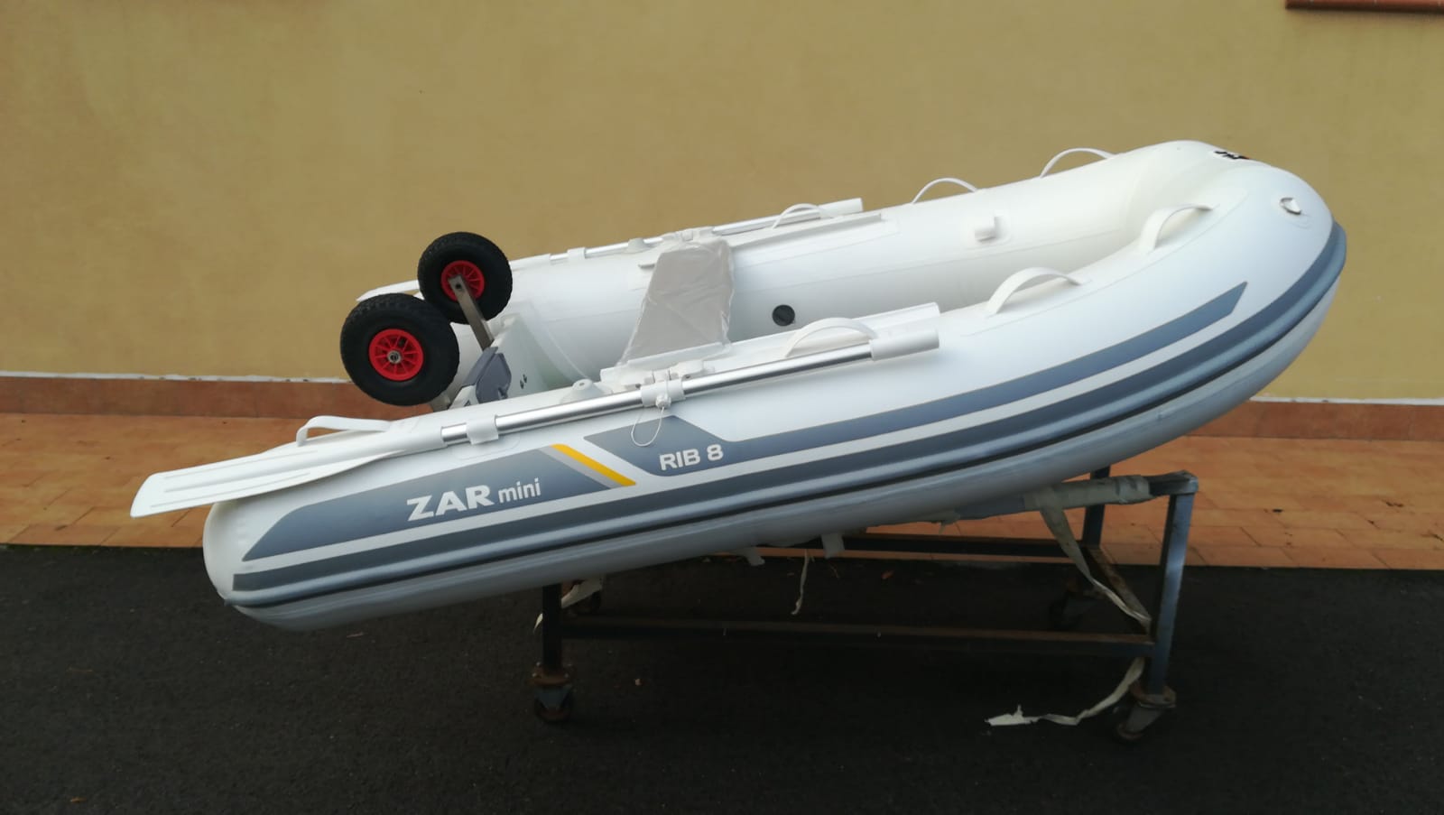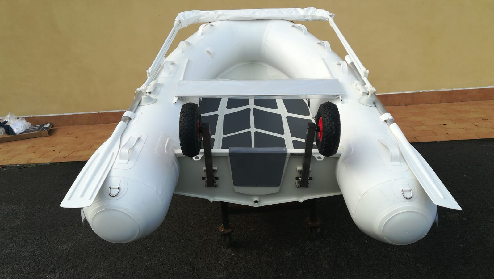 Il nuovo arrivato dei famosi ZAR Mini in alluminio_ Appena applicate ruote per specchio di poppa e tendalino parasole ribaltabile.